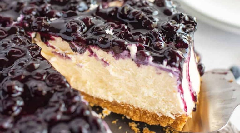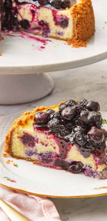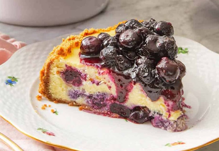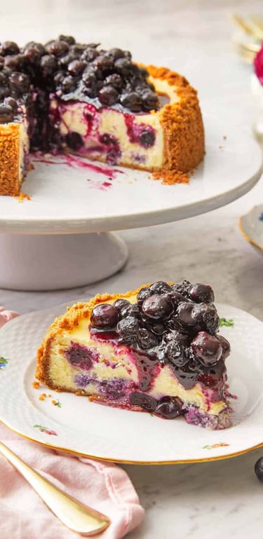 O cheesecake de mirtilo cremoso é uma daquelas sobremesas que chamam atenção só de olhar. A base crocante de biscoito contrasta com o recheio suave de cream cheese e a cobertura vibrante de mirtilos frescos, criando um equilíbrio perfeito entre doçura e leve acidez. É uma receita elegante, com visual profissional e sabor marcante.