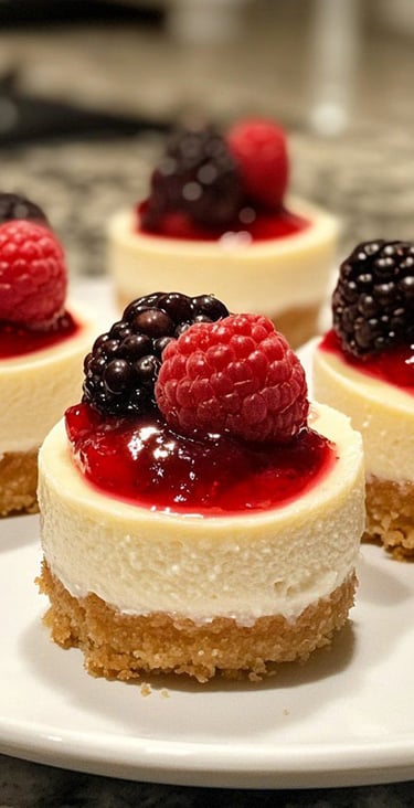 O mini cheesecake é aquela sobremesa elegante que impressiona só de olhar: base crocante, creme ultra cremoso e cobertura brilhante com frutas vermelhas. Um doce que vira destaque em qualquer mesa de Natal — seja pra vender em caixinhas individuais ou servir em porções delicadas.