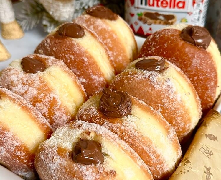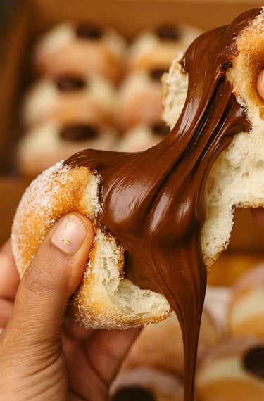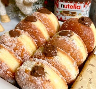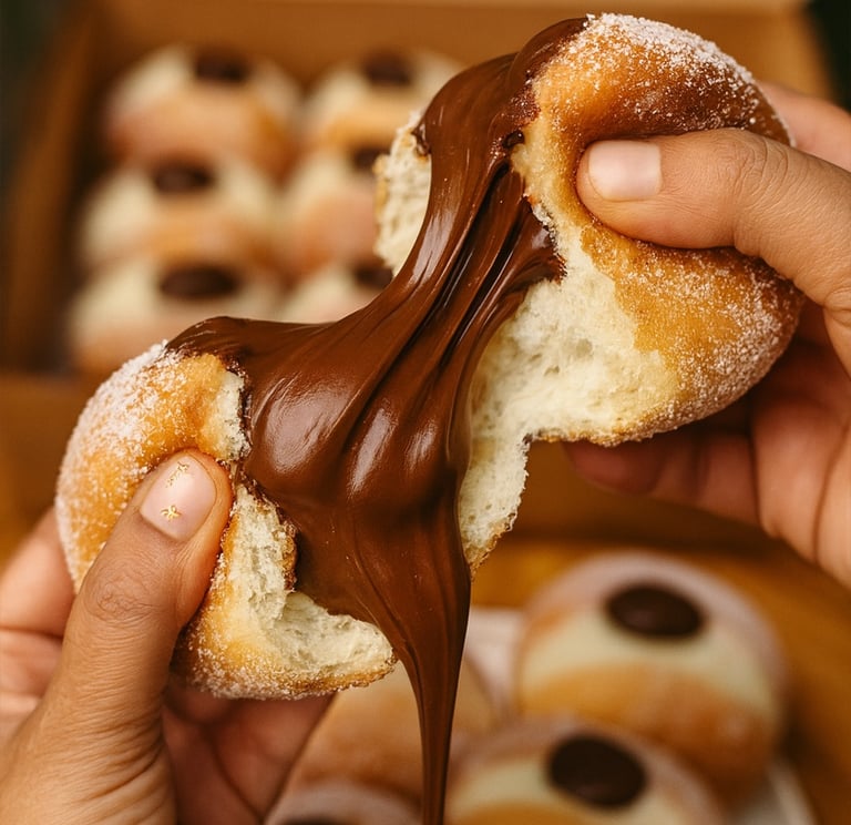 Os sonhos de padaria com recheio de Nutella são pura tentação: massa leve, douradinha e coberta com açúcar, escondendo um recheio cremoso que transborda a cada mordida. São perfeitos para vender em unidades ou caixinhas com 2 a 4 unidades — e garantem fila em qualquer vitrine.